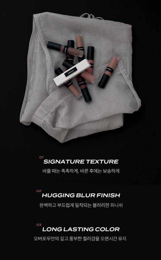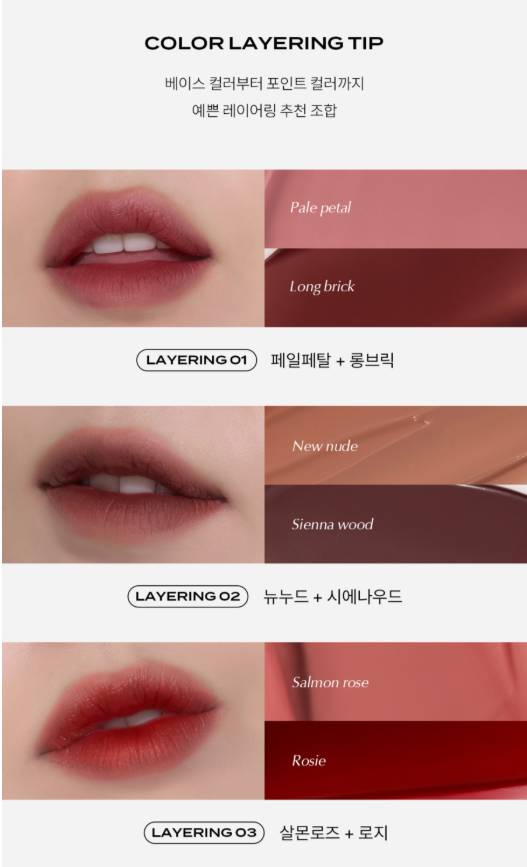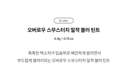 Уруулыг жигд, зөөлөн, blur эффекттэй харагдуулдаг бөгөөд уруул Хуурайшуулахгүй. Өнгө нь хамгийн удаан тогтоцтой.8 trendy өнгөний сонголттой.Наалдамхай биш тул уруулаа будаагүй мэт мэдрэмж төрүүлнэ. Солонгосын MUSINSA-д худалдаалагддаг нэрийн уруулын тинт.
