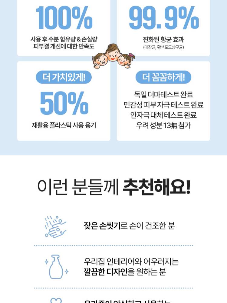 Угаасны дараа арьсны чийгшлийг хадгална .Бактерийн эсрэг 99.9%-ийн үр дүнтэй.Мэдрэмтгий арьсанд тохиромжтой.. Ургамлын гаралтай 13 төрлийн найрлагыг оруулсан.