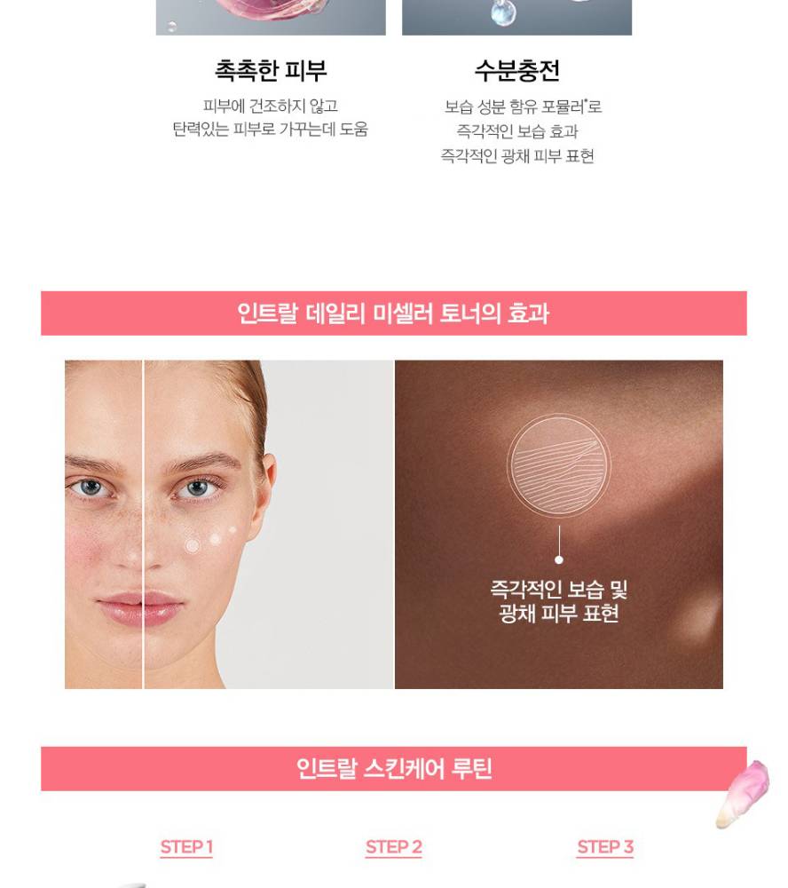 Энэхүү тоник нь усаар зайлах шаардлагагүйгээр нүүрний будаг болон бохирдлын үлдэгдлийг зөөлөн арилгана. Ялангуяа Intral цувралын үндсэн найрлага болох арьсыг тайвшруулах бодисыг агуулсан тул, арьсны цочролыг намдааж, улайлтыг бууруулахад тусалдаг.