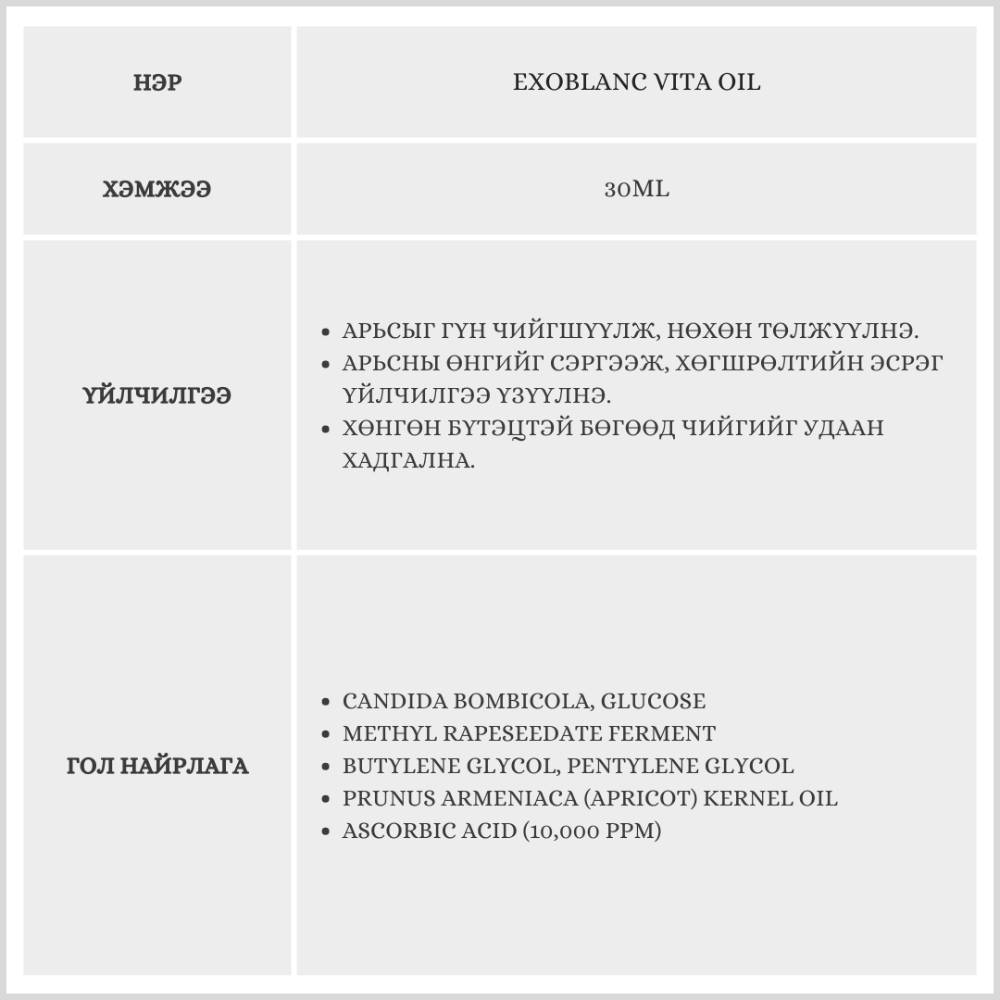 Тосон бүтэцтэй тул арьсны асуудалтай хэсэгт удаан массаж хийж шингээж өгөх бөгөөд оройн арьс арчилгаанд хэрэглэнэ. Reverse Micelle нэртэй патентлагдсан технологи нь идэвхтэй найрлагыг арьсны гүн давхаргад тогтвортой, нарийн хүргэнэ.