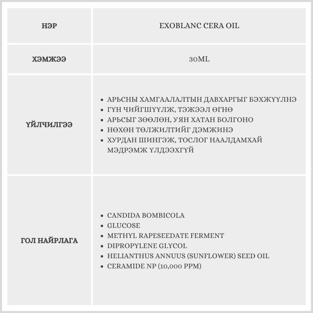 Тосон бүтэцтэй тул арьсны асуудалтай хэсэгт удаан массаж хийж шингээж өгөх бөгөөд оройн арьс арчилгаанд хэрэглэнэ. Хуурай, маш хуурай, эмзэг арьсанд хэрэглэхэд тохиромжтой. Батга гарч хуурайшиж холцруутсан хэсэгт болон арьсны хуурайшиж харалсан хэсэгүүдэд массажлаж түрхвэл тохиромжтой.