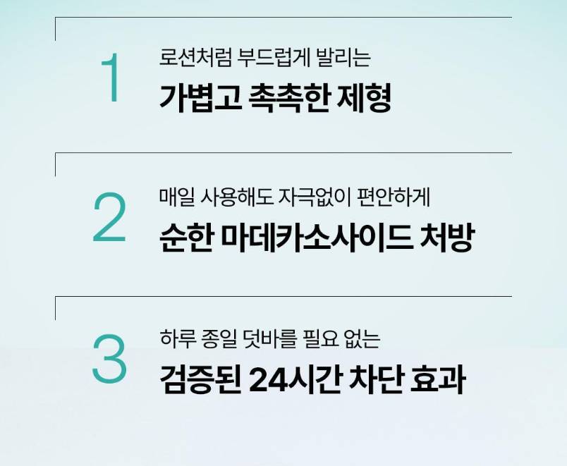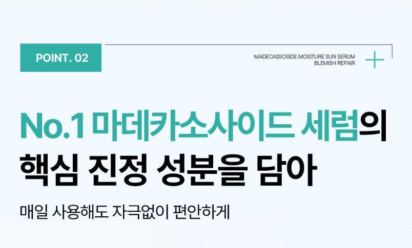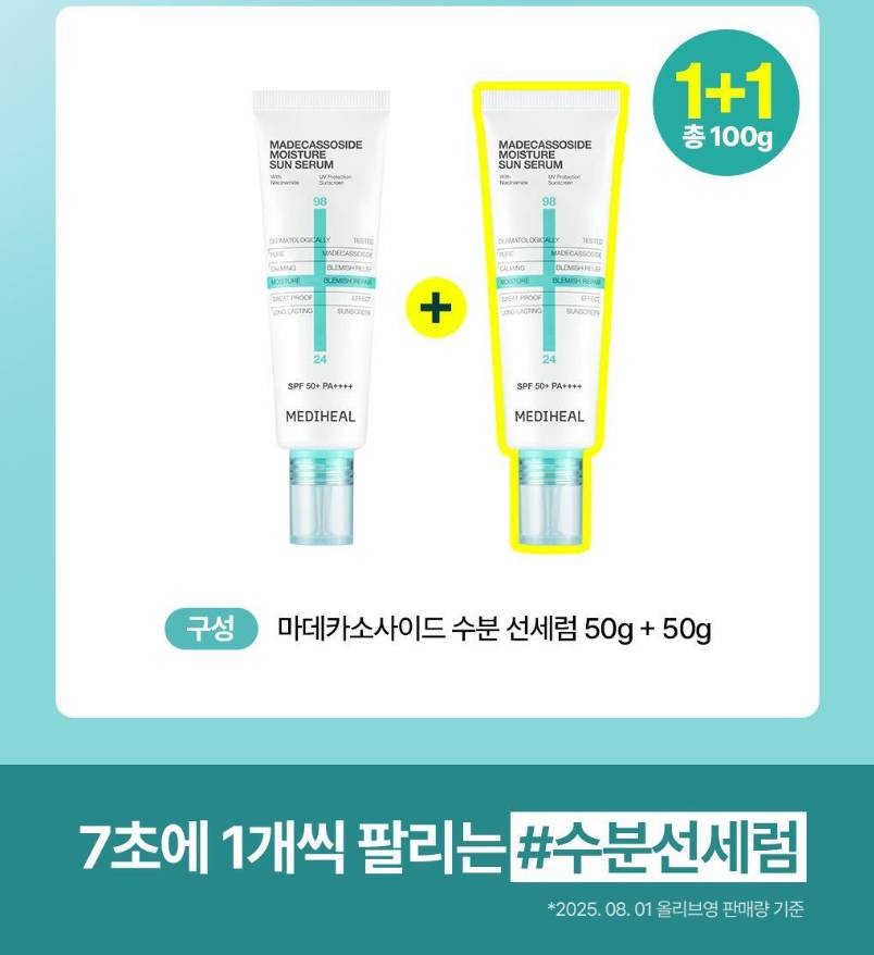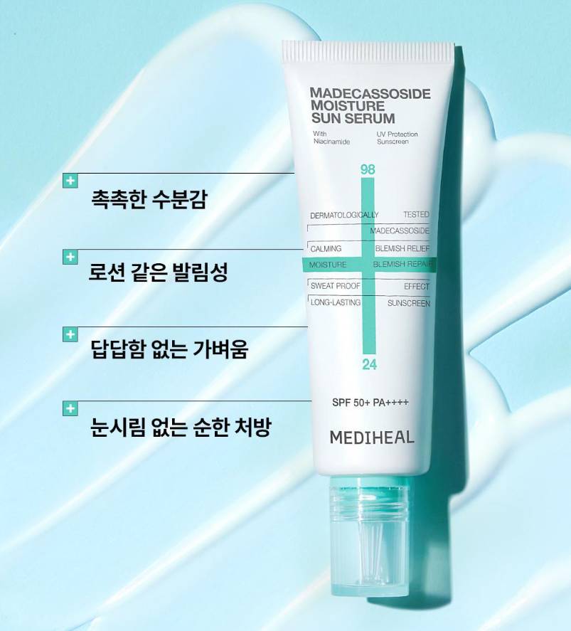 Арьсыг нарны хэт ягаан туяанаас хамгаалахаас гадна серум мэт арьс арчилгааны үйлчилгээтэй нарны тос. 24 цагийн удаан тогтоцтой ба арьсыг тайвшруулж, зөөлөн болгоно. Бэлгэнд үндсэн бүтээгдэхүүнээс гадна Mediheal Madecassoside Moisture 50г нарны тос дагалдана.