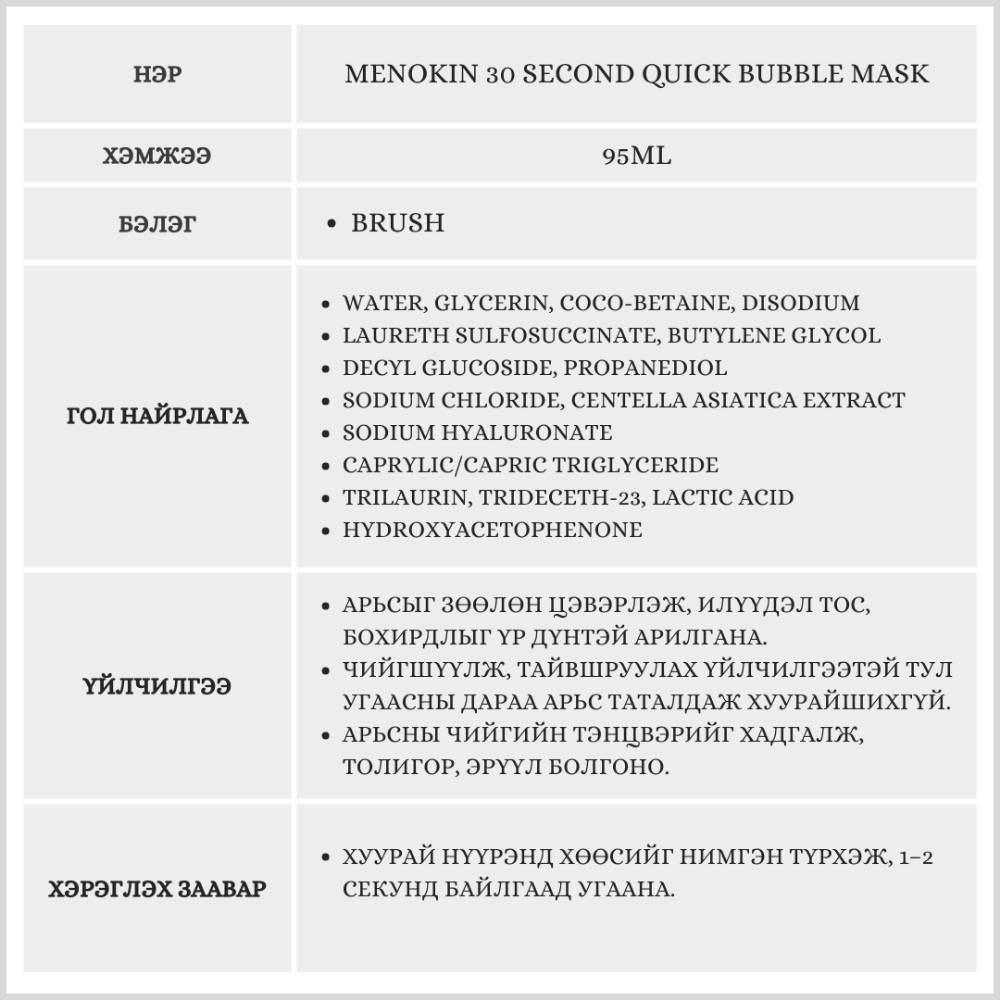 [Бэлэгтэй] Menokin 30 Second Quick Bubble Mask, 95 ml /Хөөсөн маск/OY