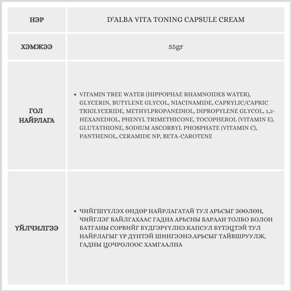 Энэхүү бүтээгдэхүүн нь арьсыг гэрэлтүүлж, арьсны өнгийг сайжруулах үйлчилгээтэй бүтээгдэхүүн.