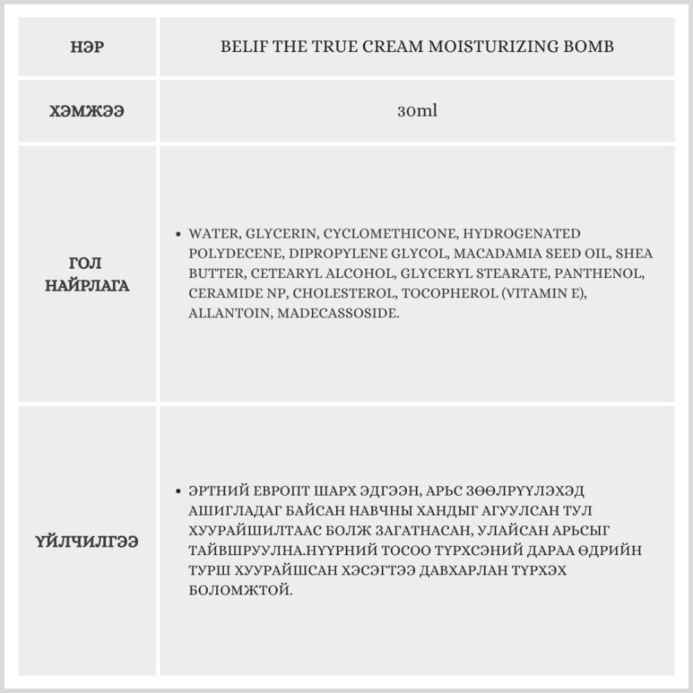 Маш хүйтэн, хуурай уур амьсгалд ч арьсны чийгийг 26 цагийн турш тасралтгүй барина.Химийн нэмэлт бодис агуулаагүй тул эмзэг арьсанд ч тохиромжтой.