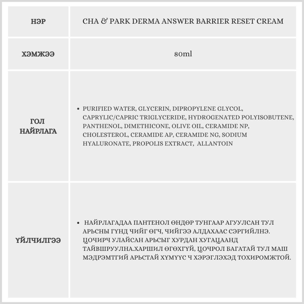 Энэхүү бүтээгдэхүүн нь арьсны хамгаалалтын бүрхүүлийг нөхөн төлжүүлж, тайвшруулах үйлчилгээтэй бөгөөд гүн чийгшүүлэн арьсны дархлааг дэмжинэ. 31 мл хэмжээтэй ижил төрлийн бүтээгдэхүүн болон CNP брэндийн бэстселлер болсон sample бүтээгдэхүүнүүд дагалдана.