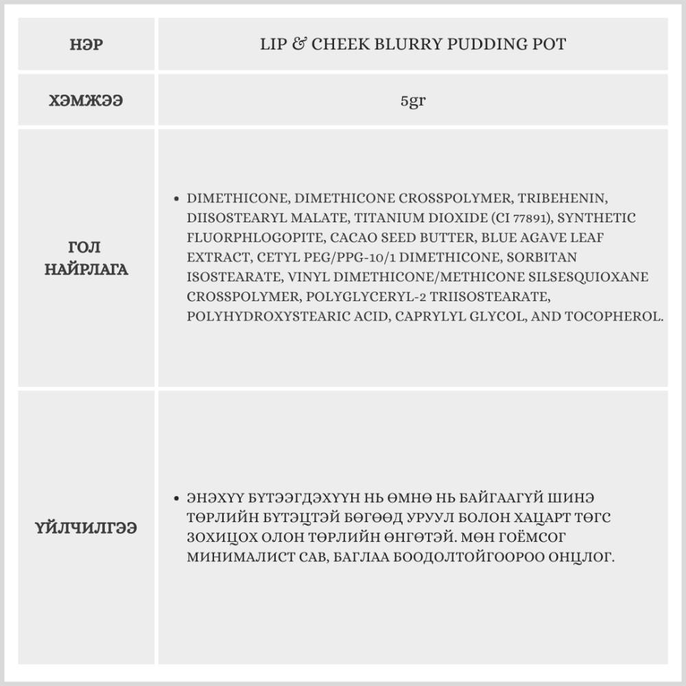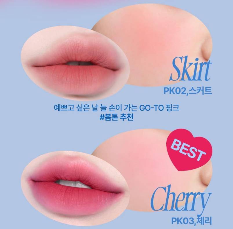Солонгост төдийгүй олон улсад маш их тренд болж байгаа, олон төрлийн гоо сайхны шагналуудыг хүртсэн бүтээгдэхүүн. Уруул болон хацарт зэрэг хэрэглэх боломжтой бөгөөд минимал будалтанд тохиромжтой, түрхэхэд натурал глосс мэт гялалзсан харагддаг давуу талтай.