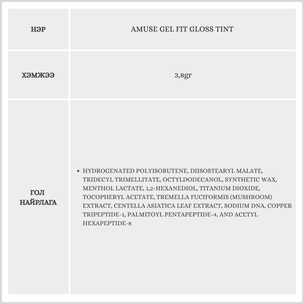 Энэхүү бүтээгдэхүүн нь уруулыг маш булбарай, гялалзсан харагдуулж, урууланд жигд шингэн тогтоно. Удаан тогтоцтой бөгөөд өдөр тутам хэрэглэхэд тохиромжтой.