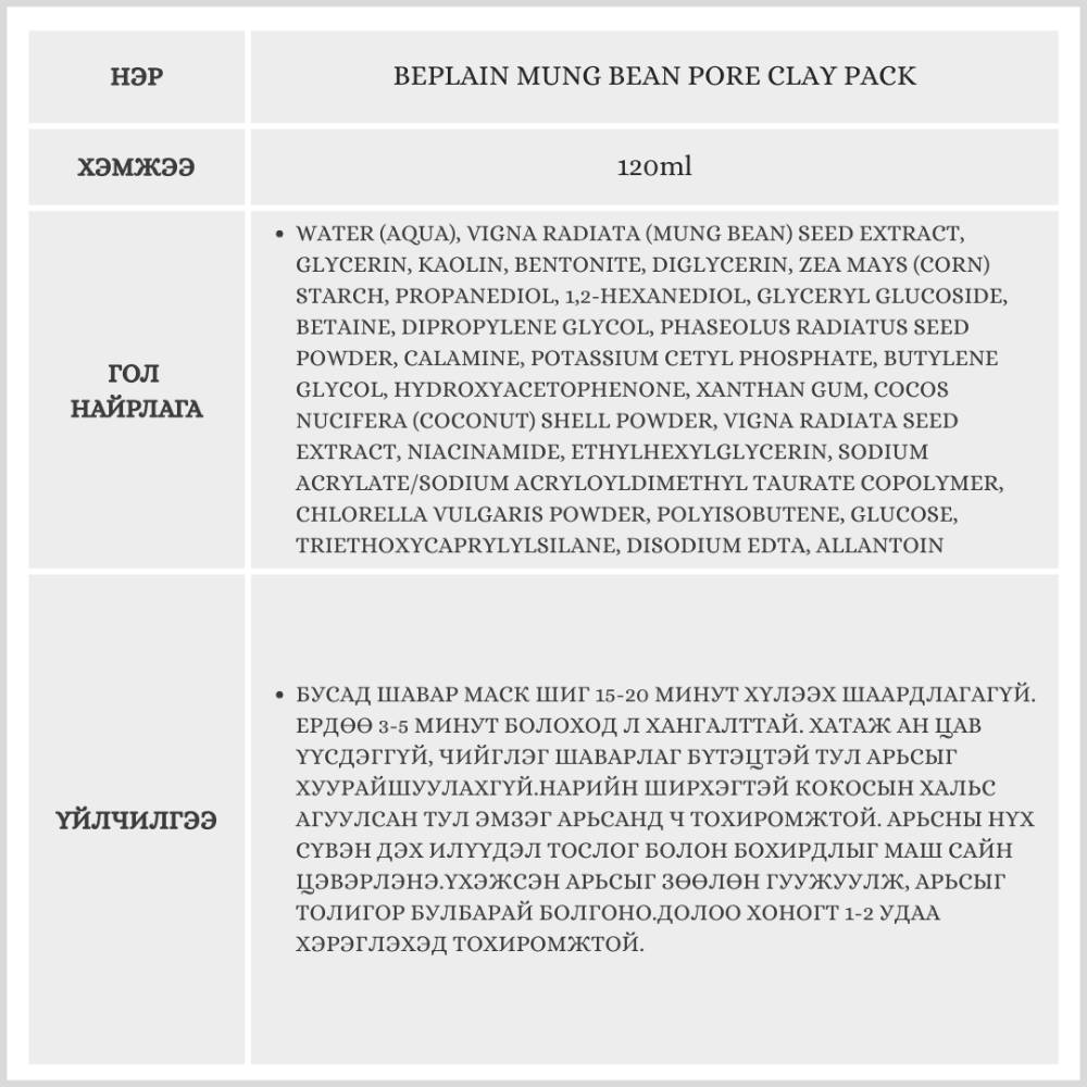 Энэхүү бүтээгдэхүүн нь илүүдэл тослогийг багасгаж, арьсны бохирдол болон нүх сүвийг гүн цэвэрлэнэ. Ногоон буурцагны ханд агуулсан тул арьсыг богино хугацаанд тайвшруулж, арьсны өнгийг жигд болгоно.Бэлгэнд 12 мл ийн багтаамжтай 4ш ижил бүтээгдэхүүн дагалдана.