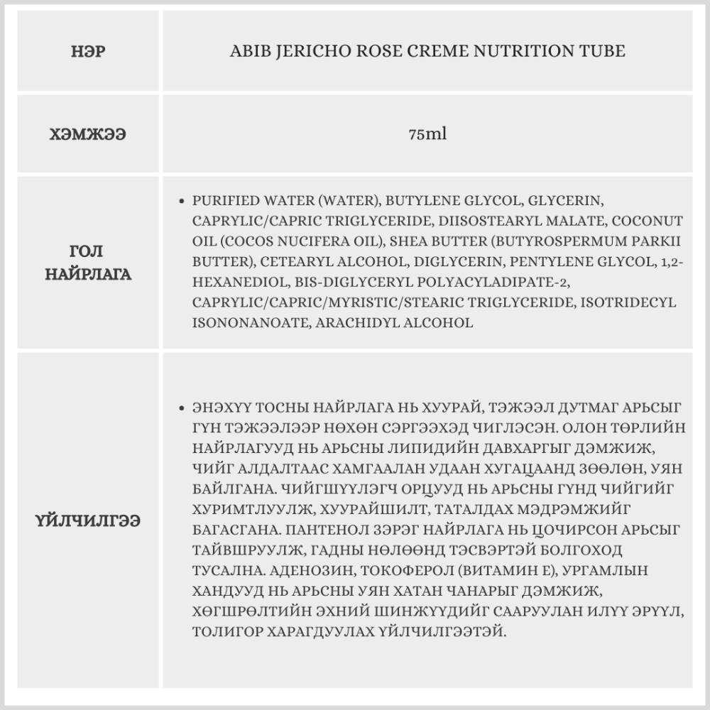 Энэхүү бүтээгдэхүүн нь эмзэг, хуурай арьсанд нэн тохиромжтой бөгөөд, арьсыг тэжээж, хамгаалж, эрүүлжүүлэх үйлчилгээтэй нүүрнийн тэжээлийн тос юм. Арьсанд гүн чийгшил өгч, таталдах мэдрэмжийг багасгана. Бэлгэнд 75 мл савлагаатай адил бүтээглдэхүүн дагалдана.
