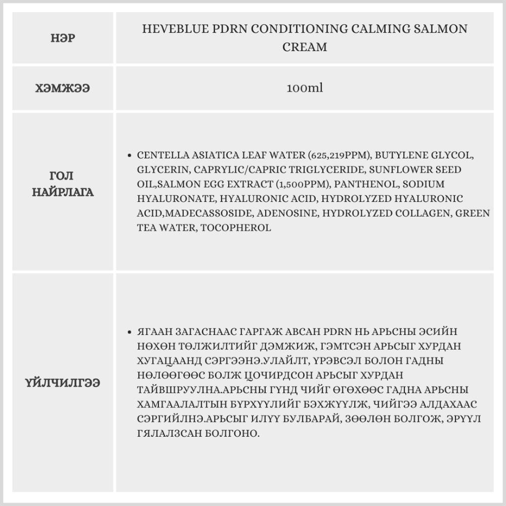Энэхүү бүтээгдэхүүн нь арьсны эсийн нөхөн төлжилтийг дэмжиж, гэмтсэн арьсыг богино хугацаанд сэргээх үйлчилгээтэй. Арьсыг маш хурдан тайвшруулж, арьсны бүтэц, уян хатан чанарыг сайжруулна.Бэлгэнд 100 мл ижил бүтээгдэхүүн дагалдана.