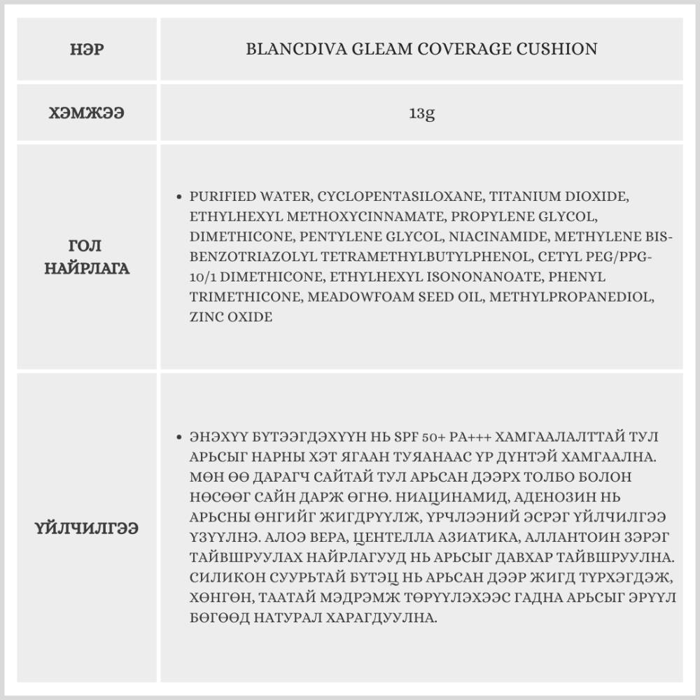 Энэхүү нүүрний суурь будаг нь өө дарагч сайтай ба арьсны нөсөө толбо, улайлтыг маш сайн дарж өгдөг давуу талтай. Бэлгэнд 13гр савлагаатай запас бүтээгдэхүүн дагалдана.