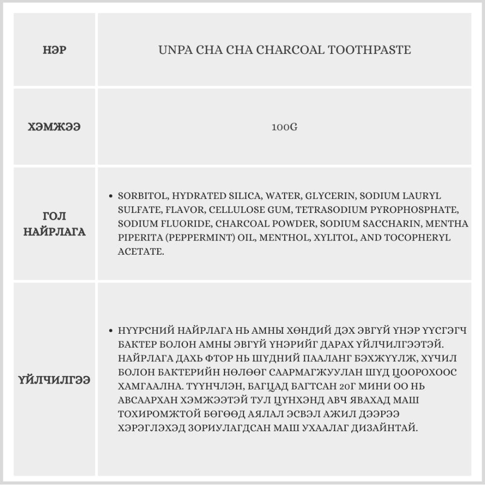 Энэхүү бүтээгдэхүүн нь идэвхжүүлсэн нүүрс агуулсан тул амны хөндийн эвгүй үнэрийг маш сайн арилгаж, шүдний өнгөрийг гүн цэвэрлэх үйлчилгээтэй хар өнгөтэй оо юм.