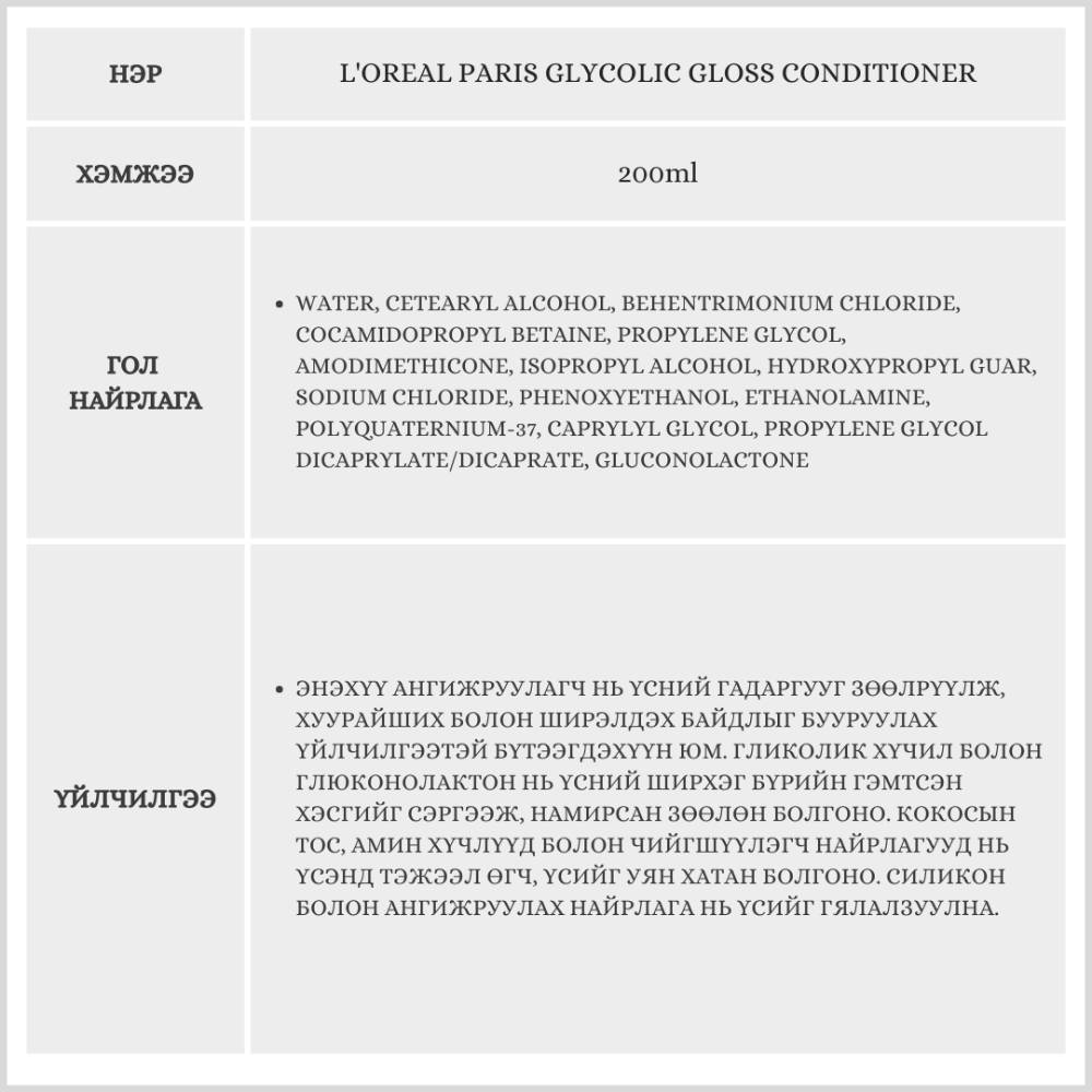 Энэхүү бүтээгдэхүүн нь үсийг зөөлрүүлж, намирсан болгохоос гадна үсний өнгийг сэргээж, гялалзуулах үйлчилгээтэй үсний ангижруулаг юм. Гэмтэлтэй, хуурайшсан үсэнд тэжээл өгч, торгомсог болгоно. Бэлгэнд 40мл савлагаатай адил бүтээгдэхүүн дагалдана.