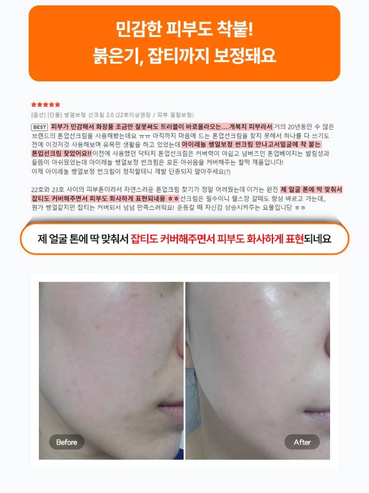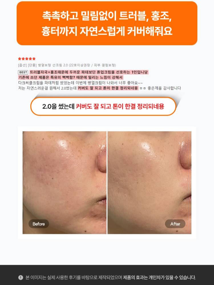 Энэ бүтээгдэхүүн нь эрэгтэй, эмэгтэй аль ч хүйсийн хүмүүст тохиромжтой бөгөөд төрөлхийн мэт харагддаг учраас Солонгост алдартай. Арьсны өнгийг нэгэн жигд өнгөөр гэрэлтүүлж, нүх сүв болон арьсны өө сэвийг “Blur” буюу бүдгэрүүлж харагдуулдаг үйлчилгээтэй.