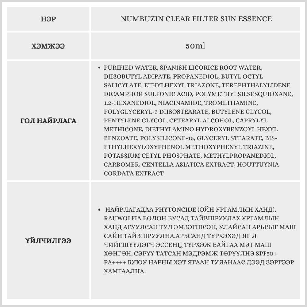 Энэхүү бүтээгдэхүүн нь арьс тайвшруулах үйлчилгээтэй, ус шиг хөнгөн бүтэцтэй гэдгээрээ алдартай. Арьсыг тайвшруулахаас гадна усан бүтэцтэй. Нарны хамгаалалт өндөр тул арьсыг цайруулж, зураас үүсгэхгүй. Бэлгэнд 1 ширхэг ижил бүтээгдэхүүн дагалдана.