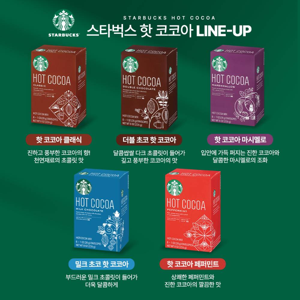 Box Line Up ❤️ 5 төрлийн амт 🍫 Classic – Зөөлөн, уламжлалт какаоны амт 🍫 Double Chocolate – Илүү өтгөн, гүн шоколадны амттай 🍫 Marshmallow – Чихэрлэг, зөөлөн маршмеллоутай 🍫 Milk Chocolate – Кремлэг, зөөлөн амт, бага зэрэг чихэрэг 🍫 Peppermint –Шоколадны амтыг сэргээхүйц гаатай хослуулсан амт