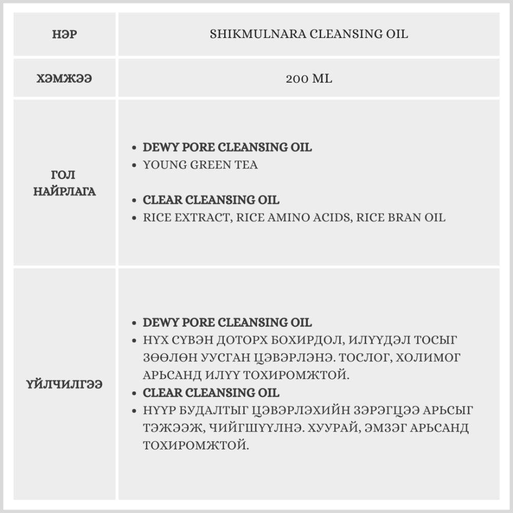 Shikmulnara Cleansing Oil, 200 ml/Нүүрний тосон цэвэрлэгч/
