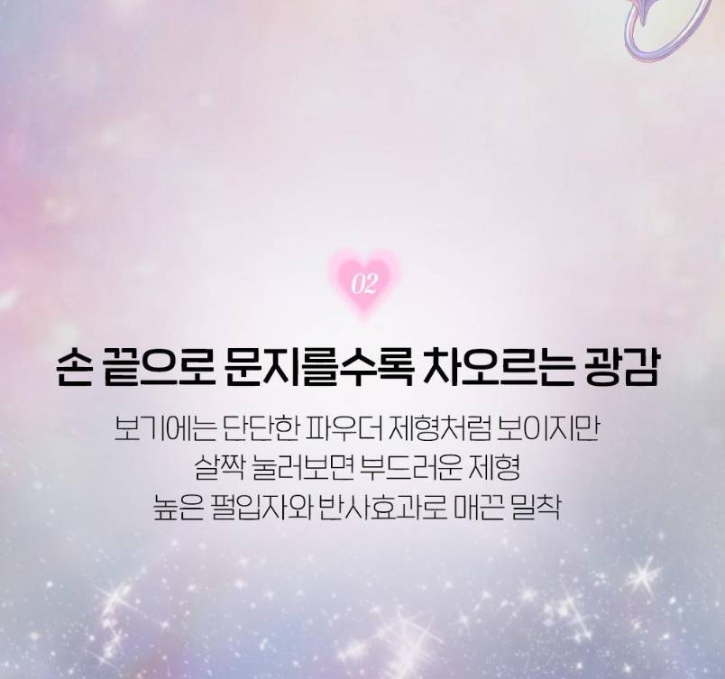 Арьсанд хүрэх төдийд л маш тод, тунгалаг гэрэлтэлтийг өгч, нүүрний хэлбэрийг илүү амьд, өөгүй харагдуулна.