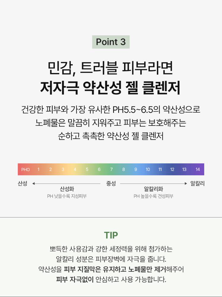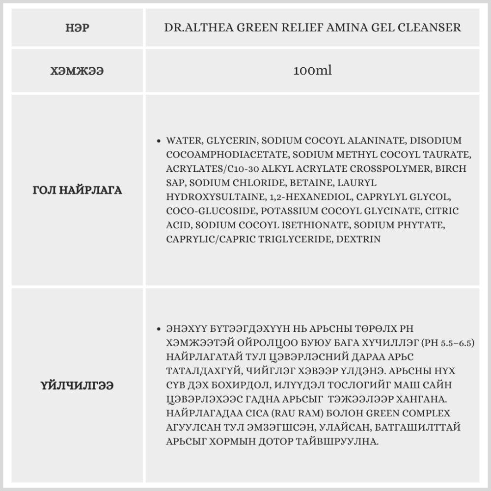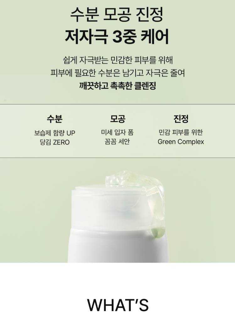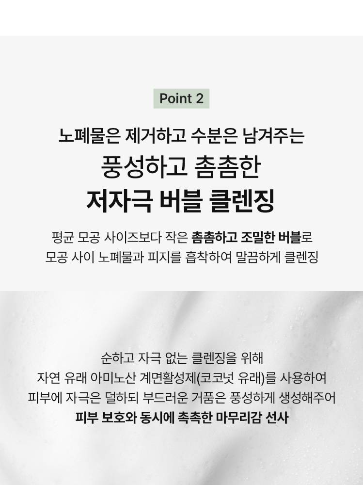 Энэхүү бүтээгдэхүүн нь арьсны илүүдэл тослог болон будгийн үлдэгдлийг гүн цэвэрлэнэ. Арьсыг тайвшруулах үйлчилгээтэй бөгөөд батгатай, эмзэг арьсыг ч тайвшруулна. Арьсны төрөлх pH хэмжээтэй ойролцоо pH 5.5–6.5 найрлагатай тул цэвэрлэсний дараа арьс таталдахгүй, чийглэг хэвээр үлдэнэ.