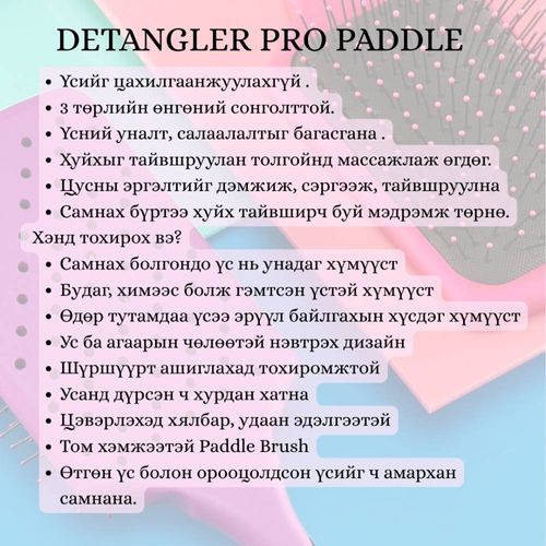 Wet brush brand -ийн сам нойтон үсийг ч амархан, зөөлнөөр самнаж, дайхралтыг багасгана. • Үсээ олон самнах шаардлагагүй • Гэмтэлтэй үсэнд хэрэглэхэд тохиромжтой. • Нойтон үс самнахад тохиромжтой.