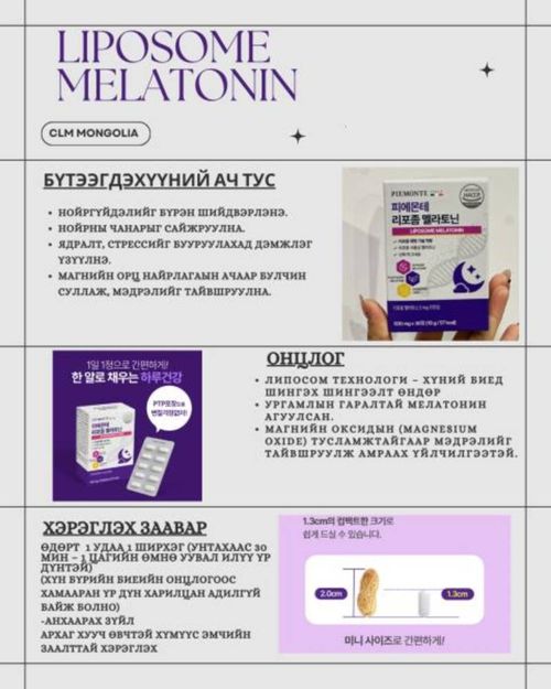 Тав тухтай нойрны нууц Липосом технологиор боловсруулсан Piemonte Melatonin нь нойрыг гүн, тайван болгож, биологийн цагийг тэнцвэржүүлэн өдрийн ядаргааг тайлна