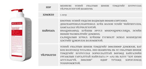 MEDISURE Үсний уналтын шинж тэмдгийг бууруулах үйлчилгээгтэй шампунь 1 литр