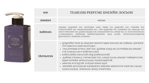 TEABLESS perfume body lotion SAGE AMBER PURFLE TEA (480ml)