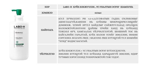 Labo H Хуйх бэхжүүлэх + үс уналтын эсрэг шампунь
