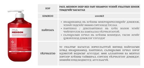 Paul Medison Deep Red Fast Shampoo Үсний уналтын шинж тэмдгийг багасгана. 1000мл