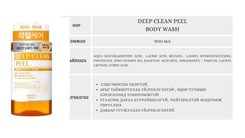 Энэ бүтээгдэхүүн нь “АHA + BHA” (альфа-гидрокси хүчил + бета-гидрокси хүчил) найрлагатай бөгөөд, биеийн үхэжсэн арьс / хатуурсан хэсгүүдийг зөөлрүүлж, арилгах зорилготой. All-in-One буюу нэг бүтээгдэхүүнээр арьс цэвэрлэх, гуужуулахаас гадна, өдөр тутмын биеийн арчилгааг нэгтгэсэн.