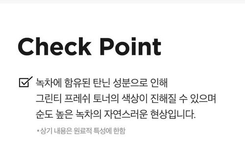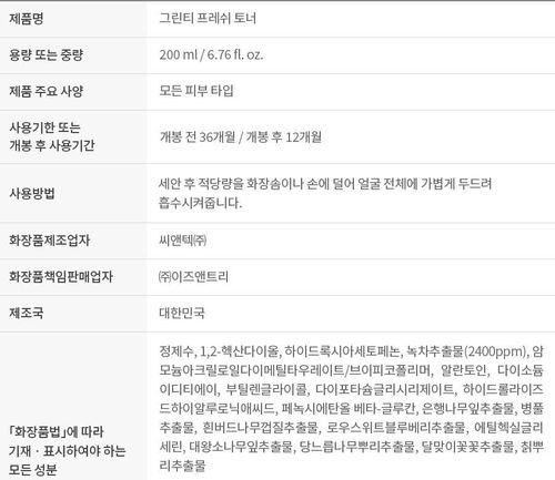 Жэжү арал дээр ургасан 80 % хангалттай шинэхэн ногоон цайны (Green Tea) ханд агуулсан. Алкохоль, үнэртүүлэгч, өнгө оруулагч бодис гэх мэт арьсанд сөрөг нөлөө бүхий орц агуулаагүй.