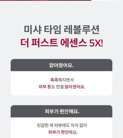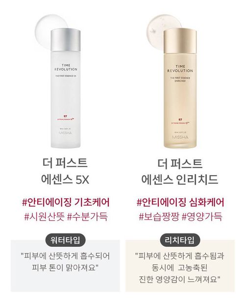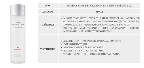 MISSHA брэндийн хамгийн алдартай эссенс. 97% Desert Cica Yeast Ferment агуулсан арьсыг гэрэлтүүлж, уян хатан болгож, өнгийг сэргээнэ. 5 дахин сайжруулсан найрлага (5X) өмнөх бүтээгдэхүүнүүдээс илүү хурдан шингэдэг, илүү тогтвортой чийгшүүлэлттэй.