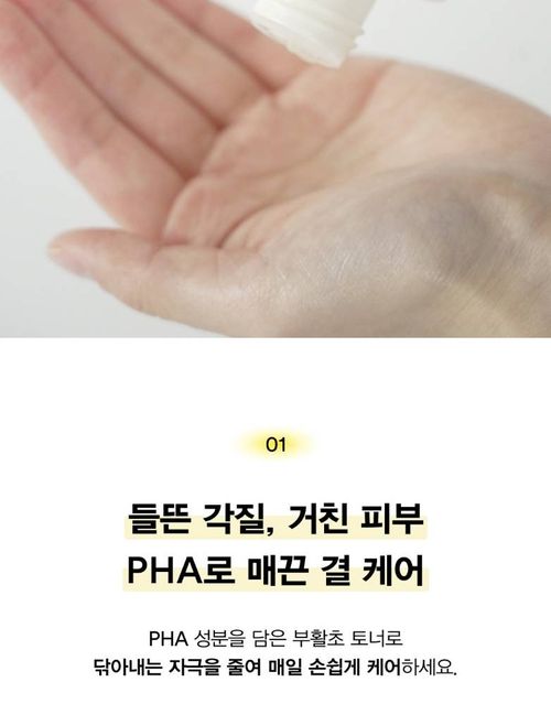 Энэ тонер нь “PHA 5%” агууламжтай хэт хүчтэй биш (эксфолиаци) формултай бөгөөд арьсны үхэжсэн эс, ширүүн гадаргуутай хэсгүүдийг зөөлөн гуужуулж өгдөг. Арьсийг гүн чийгшүүлж, жигд болгох “тонер + скин бустер” хэлбэртэй тул илүү сайн үр дүнтэй бүтээгдэхүүн юм.