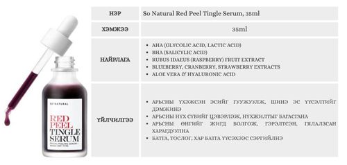Арьсны үхэжсэн эсийг зөөлөн гуужуулж, шинэ эсийн нөхөн төлжилтийг дэмждэг гуужуулагч серум. AHA + BHA + байгалийн жимсний хүчил-ийн хосолсон найрлага нь арьсны гүн дэх бохирдол, тослогийг арилгаж, арьсыг гялалзсан, цэвэр болгоно.