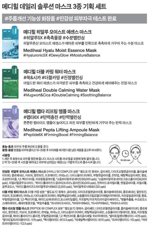 MEDIHEAL Double calming 10+Hyalu moist 10+ Pepta lifting10