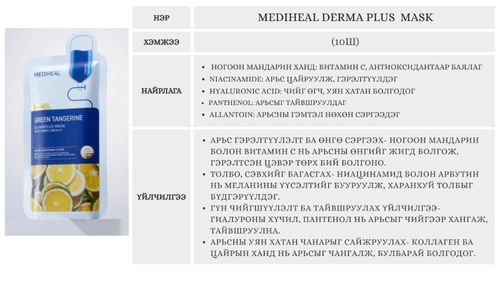 Арьсны өнгийг сэргээж, нүхжилтийг багасгах, гэрэлтсэн цэвэр арьс бий болгох зориулалттай витамин С-ийн агууламж өндөртэй маск юм. Шинэхэн ногоон мандарин болон ниацинамидын найрлага нь ядарсан, сэвх толботой арьсыг цайруулж, гэрэлтүүлдэг.