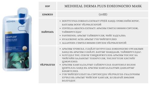 Мэдрэмтгий,батгатай, үрэвсэлтэй арьсыг тайвшруулж, илүүдэл тослогийг тэнцвэржүүлэх зориулалттай маск. Гол найрлага болох(Eoseongcho / Houttuynia Cordata) ханд нь байгалийн антибактери, үрэвслийн эсрэг үйлчилгээтэй тул батгатай, эмзэг арьсанд онцгой тохирно.