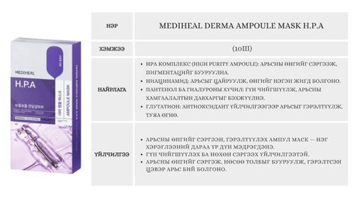 Арьсны өнгийг жигд болгож, нөсөө толбыг багасган, гэрэлтсэн эрүүл арьс бий болгоно.