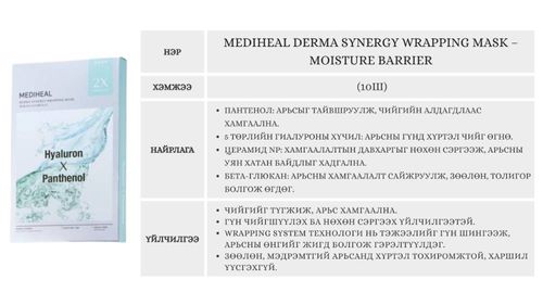 Хуурай, эмзэг арьсны аврагч — Derma Synergy Moisture Barrier Mask Арьсны чийгийг гүн шингээж, хамгаалалтын давхаргыг бэхжүүлж, хуурайшилт болон цочролыг тайвшруулна.