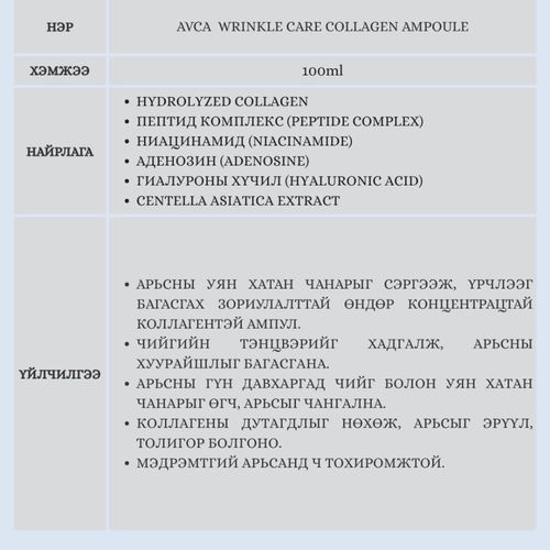 avca Wrinkle Care Collagen Ampoule, 100мл