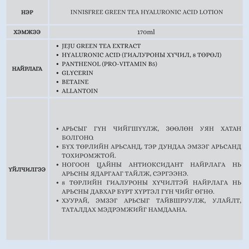 Innisfree Green Tea Hyaluronic Acid Lotion, 170ml