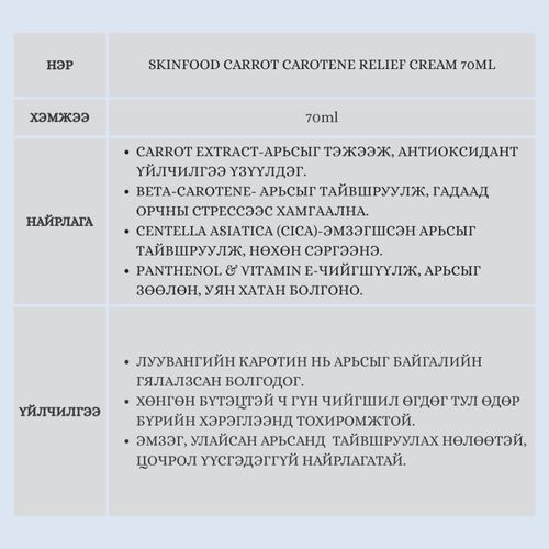 Арьсанд витаминтай тэжээл ба гүн чийгшилийг бэлэглэнэ ! Арьсыг тайвшруулж, чийгшүүлэн тэжээл өгч, улайсан болон хуурайшсан арьсыг зөөлрүүлдэг. Эмзэг, ядарсан арьсыг амрааж, гэрэлтсэн, эрүүл болгоно.