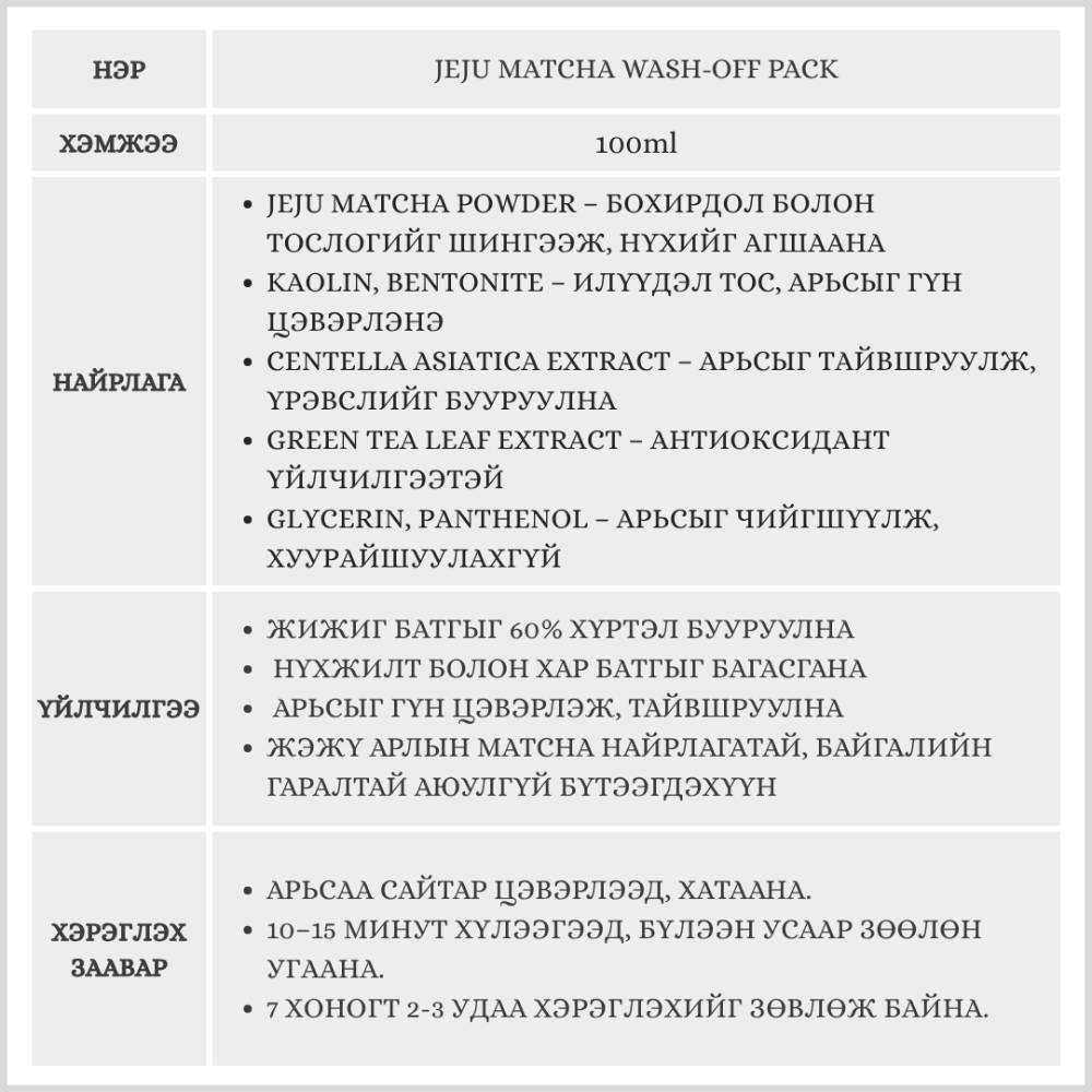 Jeju Matcha Wash-Off Pack /Угаадаг Маск/