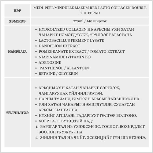 MEDI HEALMedi-Peel Mindlemaeum Red Lacto Collagen Double Tight Pad, 270мл / 140 ширхэг