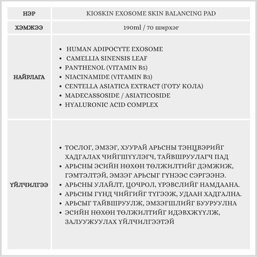 KIOSKIN Exosome Skin Balancing Pad, 190мл / 70 ширхэг