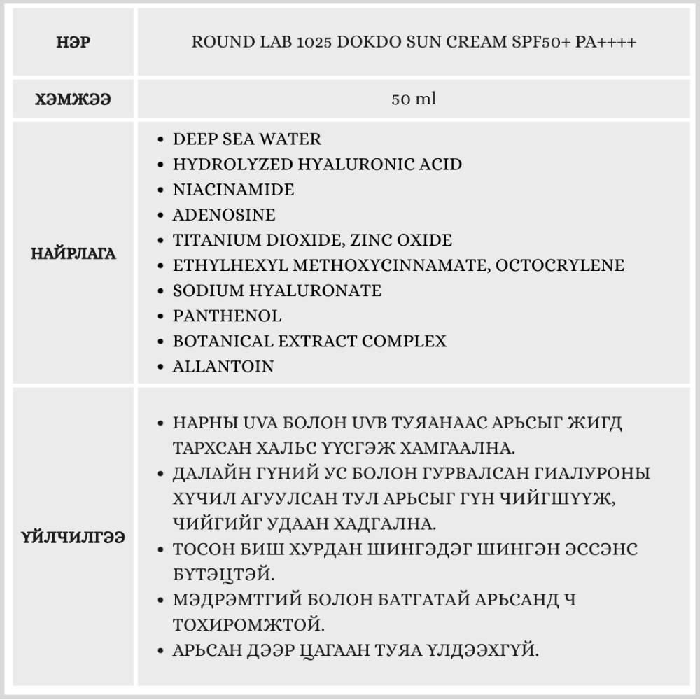 Round Lab 1025 Dokdo Sun Cream SPF50+ PA++++, 50ml