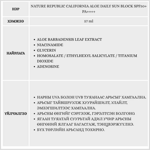 Nature Republic California Aloe Daily Sun Block SPF50+ PA++++, 57ml