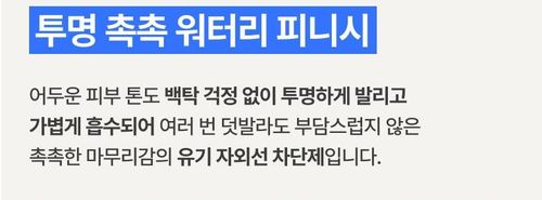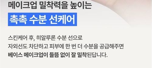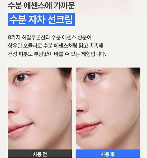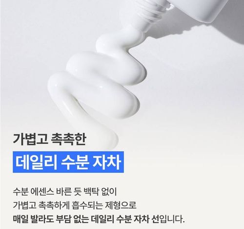 71 хувийн чийгшүүлэх эссэнс болон 8 төрлийн гиалуроны хүчил агуулсан чийгшүүлэгч нарны тос. Нарны хэт ягаан туяанаас найдвартай хамгаалахаас гадна арьсыг чийгээр хангаж, удаан хугацаанд хадгална. Шингэн бүтэцтэй тул арьсанд хурдан шингэх ба дахин түрхсэн ч цагаан туяа үлдээхгүйгээр бүрэн шингэнэ.