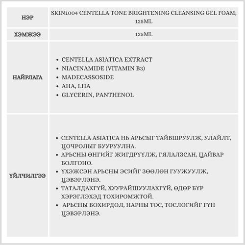Skin1004 Centella Tone Brightening Cleansing Gel Foam, 125ml